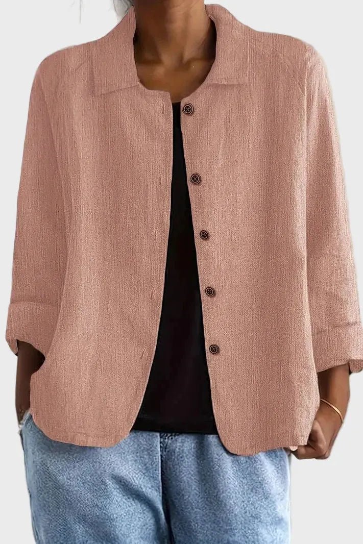 Agnes | Let T-skjorte er en elegant jakke i let hør, hvis varme lyserøde nuance indrammer en tidløs sans for raffinement. Den lette konstruktion og den naturlige tekstur giver en alsidig pasform hele året, mens håndværkets omtanke tydeligt afspejles i snit, finish og den diskrete knapdetalje. Agnes udstråler en subtil luksus uden prissignal, og dens kvalitet står stille i årenes løb. Med et begrænset antal i kollektionen er den en ægte samlergenstand for dem, der værdsætter ansvarlig stil og en bæredygtig tilgang til mode. Et enkelt, sofistikeret valg, der inviterer til langsom overvejelse og varig glæde.