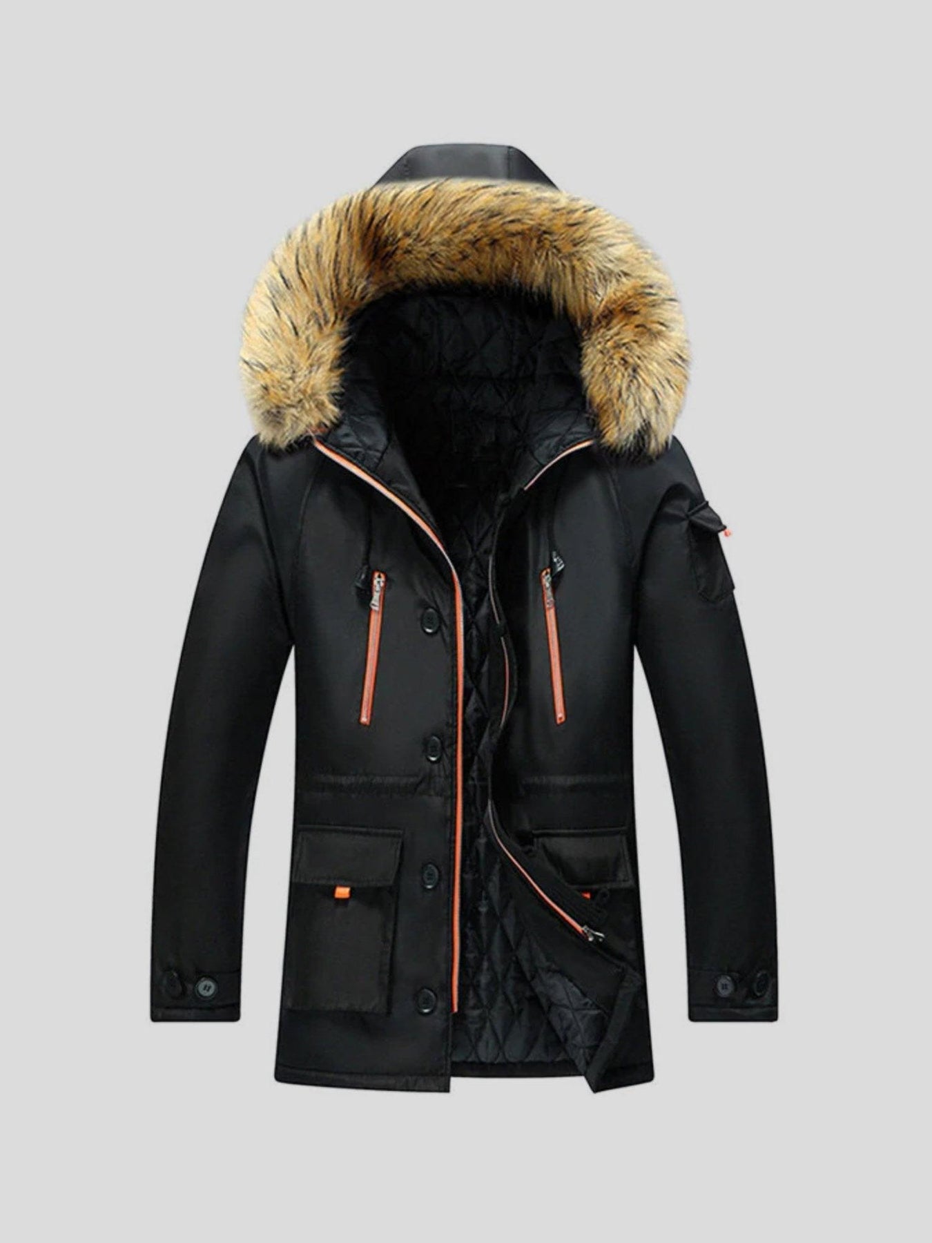 • Har en hættekrave, justerbar snoretræk i taljen og funktionelle lommer