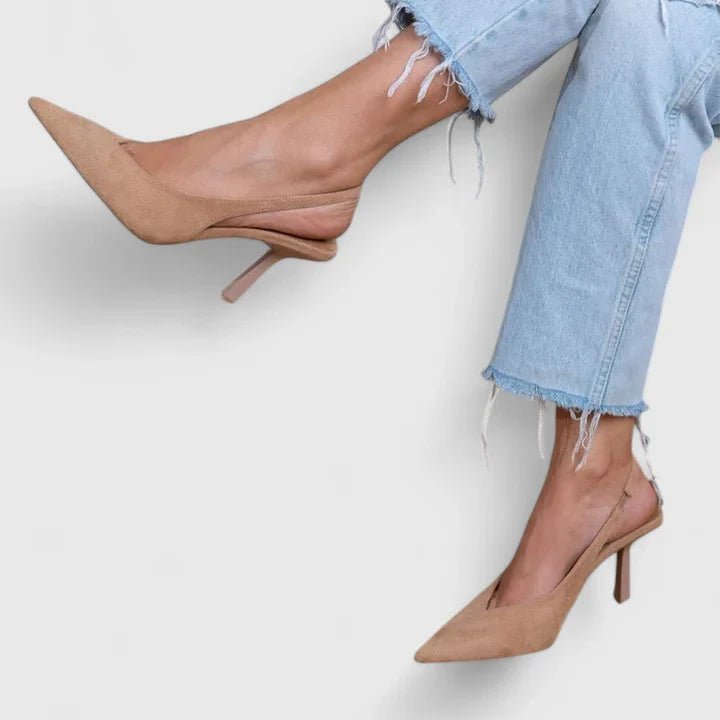 - Slingback-design: Fleksibel overgang fra dag til aften og let bevægelsesfrihed.