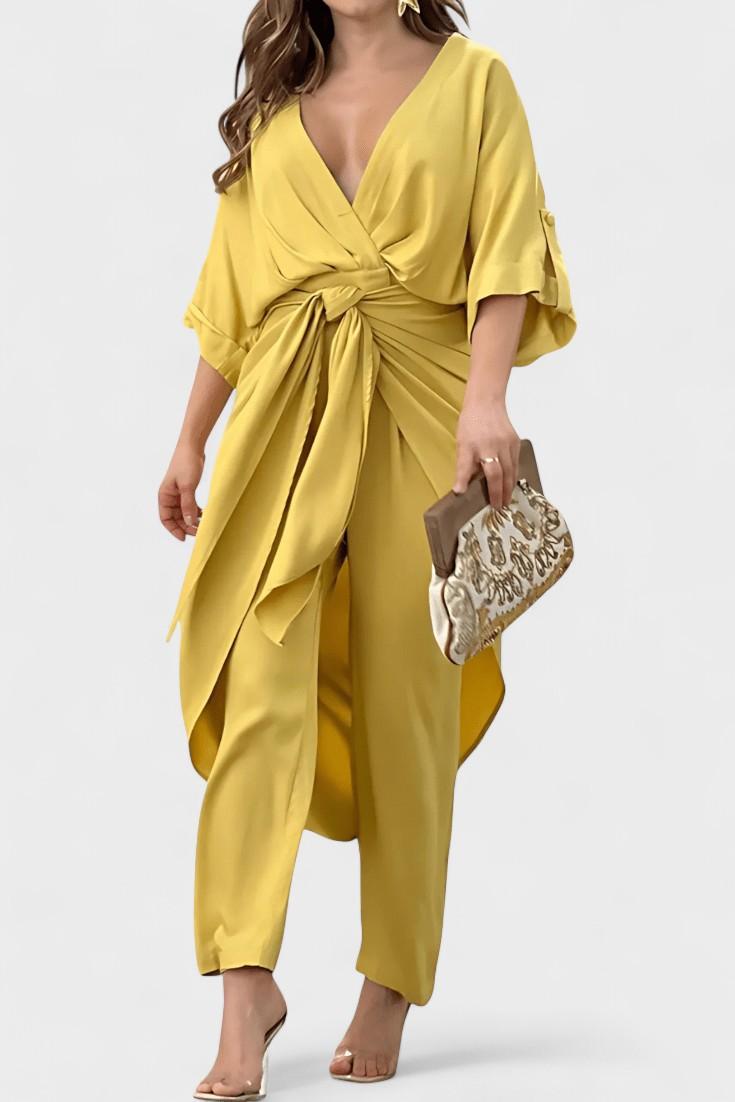 Frida | Sommer sæt udstråler tidløs elegance og omtanke for håndværk i særklasse. Det knyttede topstykke med V-udskæring og justerbart bindebånd fremhæver taljen naturligt, mens løse ærmer og flydende materiale bidrager til lethed og sommerlig stemning. De lige bukser balancerer silhuetten og skaber rolig bevægelse i solen. Sættet udtrykker kvalitetsbevidsthed uden anstrengelse og passer til sommerens mange øjeblikke. Begrænset antal og nøje udvalgte materialer giver Frida-sættet en tydelig følelse af eksklusivitet, tidløs prestige og appel til dem, der sætter håndværk i højsædet.